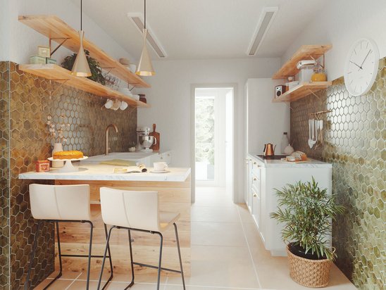 Entdecken Sie ein Zuhause ohne Grenzen: stufenlos, mit zwei Bädern und flexiblen Nutzungsmöglichkeiten. Nutzen Sie den Bereich neben dem Eingang als Einliegerwohnung oder Arbeitsbereich. Großzügige Räume, eine moderne Küche und ein lichtdurchflutetes Wohnzimmer öffnen den Blick direkt in Ihren Garten und auf die Terrasse. Erleben Sie das Gefühl von Urlaub – jeden Tag im Bungalow 128!